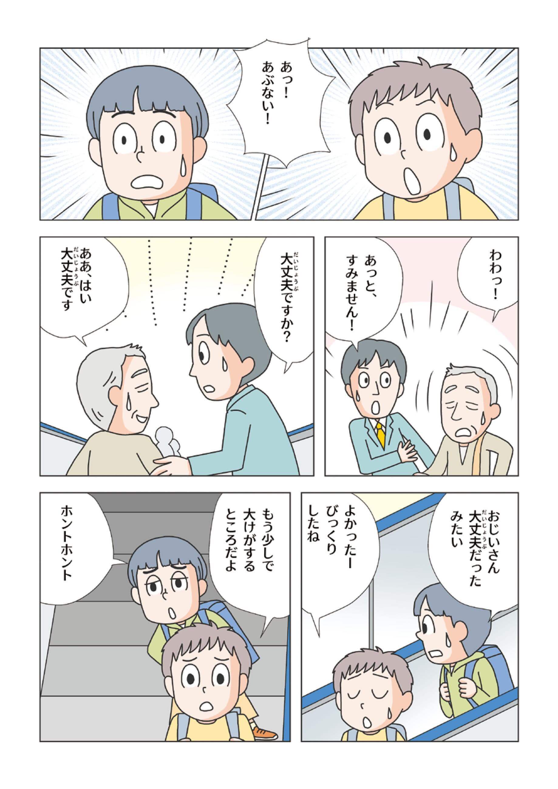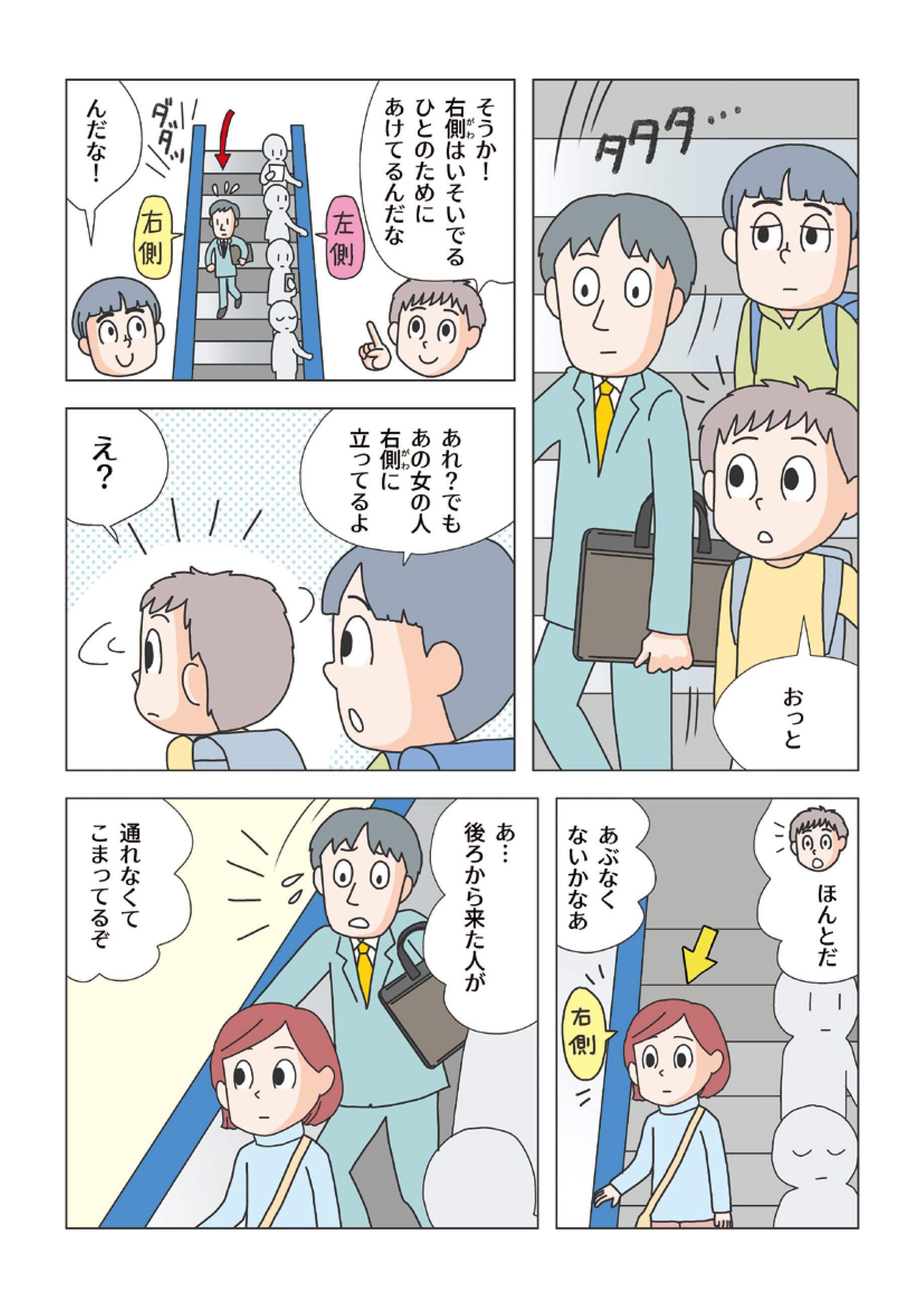 マンガを読んで、きみはどんなことを感じたかな? これからエスカレーターに乗るときには ボクたちの話を思い出してくれると嬉しいな!